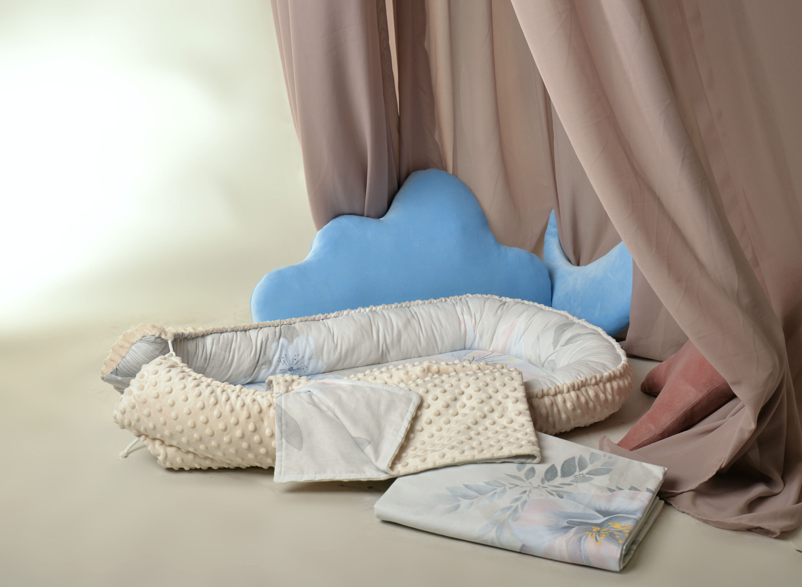 Rinkinys kūdikiui: Minky pledukas, medvilnės antklodės užvalkalas, paklodė ir pagalvėlė – švelnumas ir komfortas kiekvieną dieną